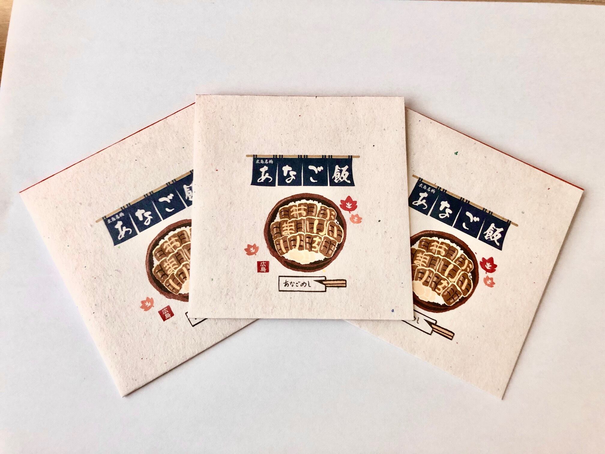 広島をモチーフにした穴子飯のデザイン。各種3枚入り。
