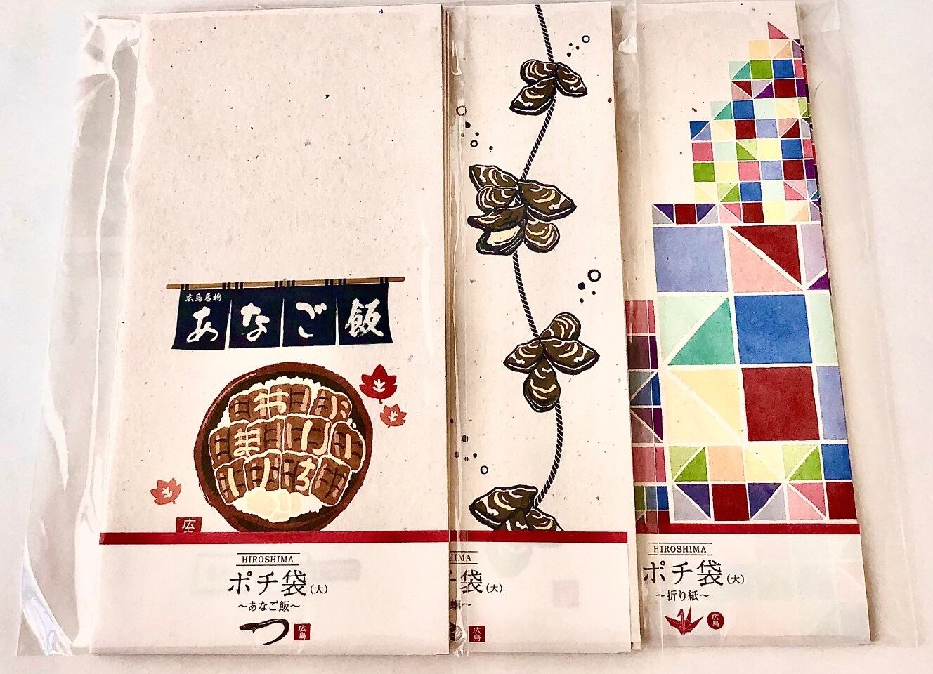 広島をモチーフにした穴子飯、折紙、牡蠣の3種デザインのセット。各種3枚入り×3種類。
